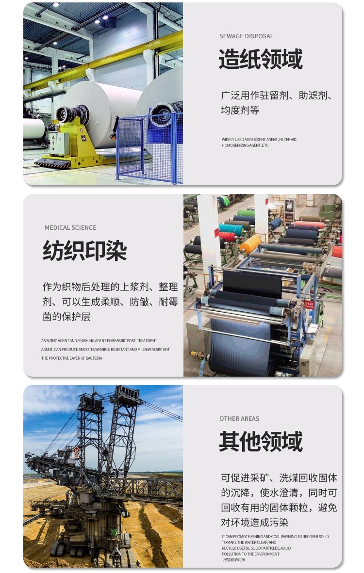 PAM陽離子高分子化合物,具有多種活潑的基團(tuán)。與多種物質(zhì)親和,吸附。常用于 城市污泥 造紙廠污泥 等工業(yè)污泥脫水處理中。